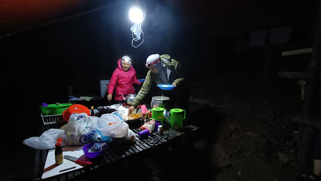 Menginapan di balairaya ini selesa bagi kami. Tempat tidur berpangkin, peralatan dapur yang lengkap, kerusi, meja, tandas dan electrik. Kemudahan ini saya anggap lengkap dan sempurna untuk kami tumpang berehat. Keesokkan paginya jam 08:00 kami semua bersedia untuk memulakan pendakian setelah sarapan. Jack sebagai guide dan porter akan menemani kami. Kami menaiki jeep sekitar 20 minit menuju ke starting point Gunung Sinsing dan Kaingaran.