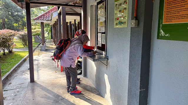 Sehari selepas saya dan dua teman mendaki Gunung Angsi, kami bertiga mendaki Gunung Datuk. Memenuhi masa cuti di Negeri Sembilan pada awal June 2024, kami mendaki dua gunung ini secara santai. Pagi itu kami memandu ke Hutan Lipur Gunung Datuk dari penginapan kami di Seremban dan memakir kenderaan di tapak pakir Hutan Lipur Gunung Datuk ini secara percuma. Setelah semua bersedia kami memulakan pendakian pada jam 9:40 pagi. Menuruni anak tangga yang dicat berwarna warni, kami menyeberangi sungai dan membayar permit pendakian RM5.00 seorang di pondok kaunter seberang sungai.